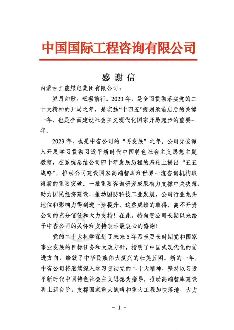 中國國際工程咨詢有限公司感謝信