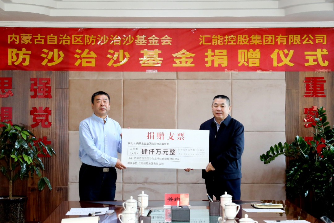 匯能控股集團向內蒙古自治區防沙治沙基金會捐贈資金4000萬元